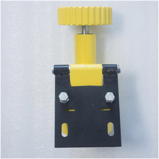 1.先將固定支架焊在輸送機的橫梁上;再將支臂用銷軸、開口銷連接在支架上。